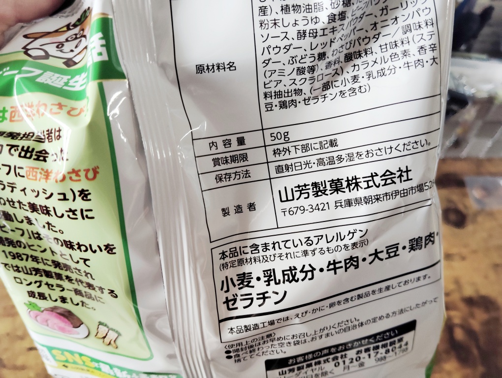 ちょっと前に、久しぶりにわさビーフが食べたくなり、数年ぶりに買いました。山芳製菓が生産停止するというニュースが出る1週間ぐらい前。まさかこんなことになるとは。アレは虫の知らせだったかもしれない・・・。このツーンとする感じが大好きで、1987年に発売され、店頭に並んでるのを見てすぐに買い、それ以来ずっと食べてました。