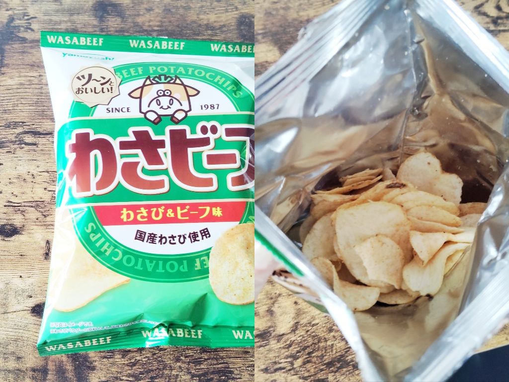 ポテトチップスは薄めでパリサクなものが好きです。わさビーフは私にとってちょうどいい塩梅。ビーフや玉葱、とわさびがバランスよく、甘みもあって相変わらずおいしいです。1987年に発売されたわさビーフは改良に改良を重ね、何度もリニューアルし、最初のころとかなり味が変わり、コンソメ感が強くなりました。