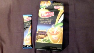 香港土産にお手軽なリプトンのミルクティ。スーパーで買えるし、マグカップに熱湯を注いで簡単に作れる。今回紹介する台湾式は烏龍茶とミルクの組み合わせ。