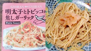 食べ物レビュー カルディ GYORAN GYORAN 明太子とトビッコの焦がしガーリック。トビッコのプチプチがプラスされた濃厚明太ソース!