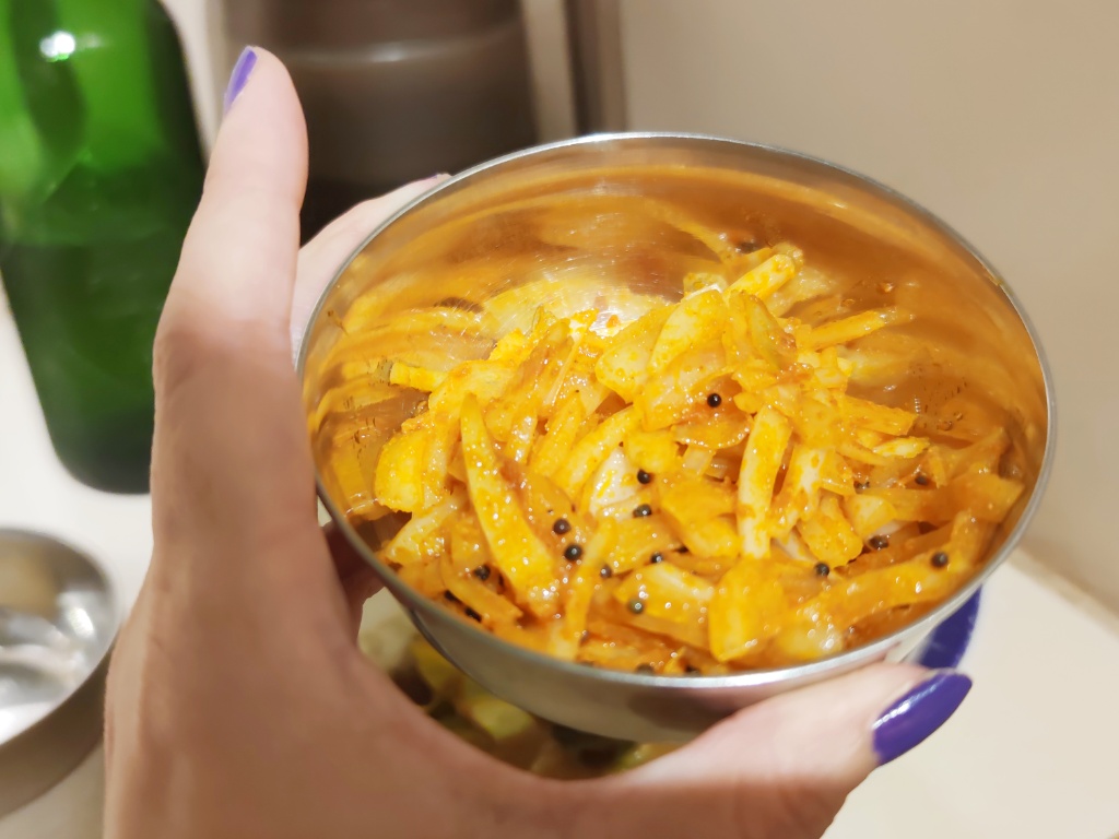大好きでほとんどそのまま食べてしまうんだけど、カレーと一緒に食べる人が多いと思います。カレーとも合うし、アチャールだけでも白米がすすみます。暑い夏の夜にいただくのにとてもさわやかな辛味とうま味を堪能しました!
