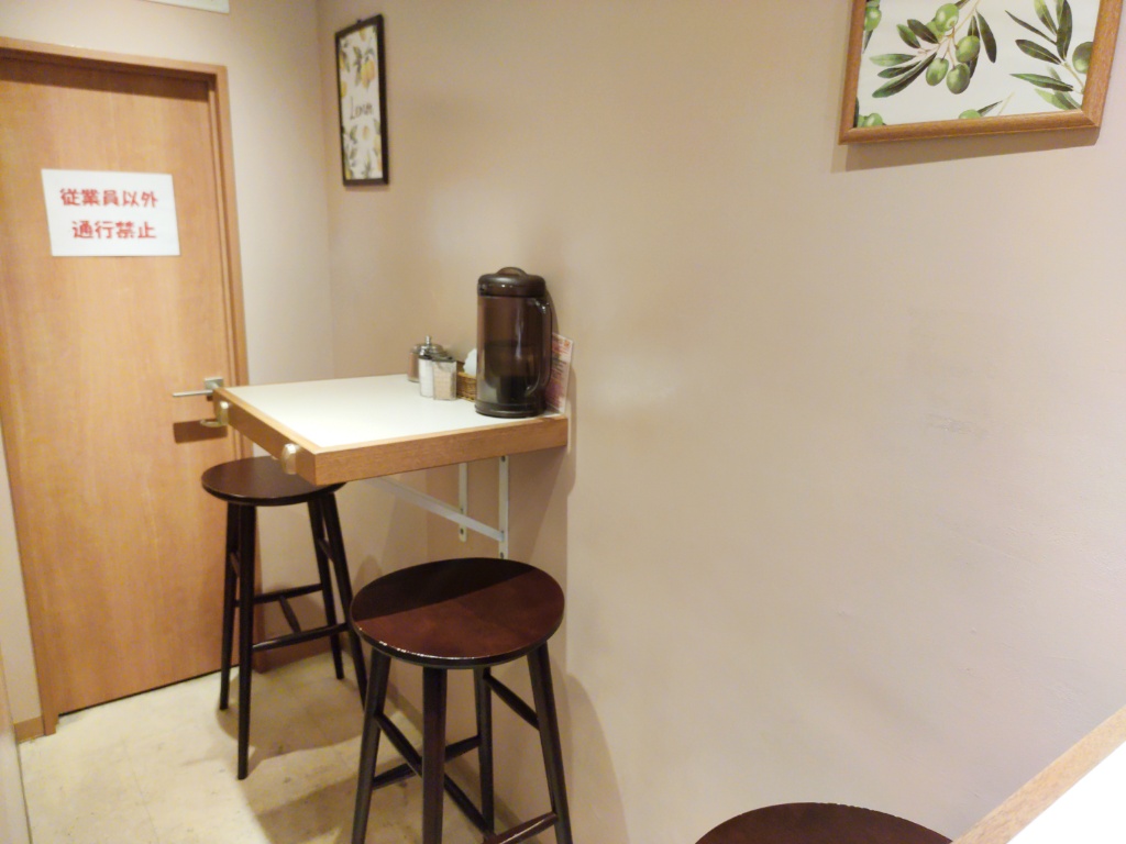 店内に入ると、まずは細長いカウンター席があり、その奥へ行くとさらに数卓のカウンター席とテーブル席があります。この奥の席はちょっとカフェっぽさがあって落ち着いた雰囲気。