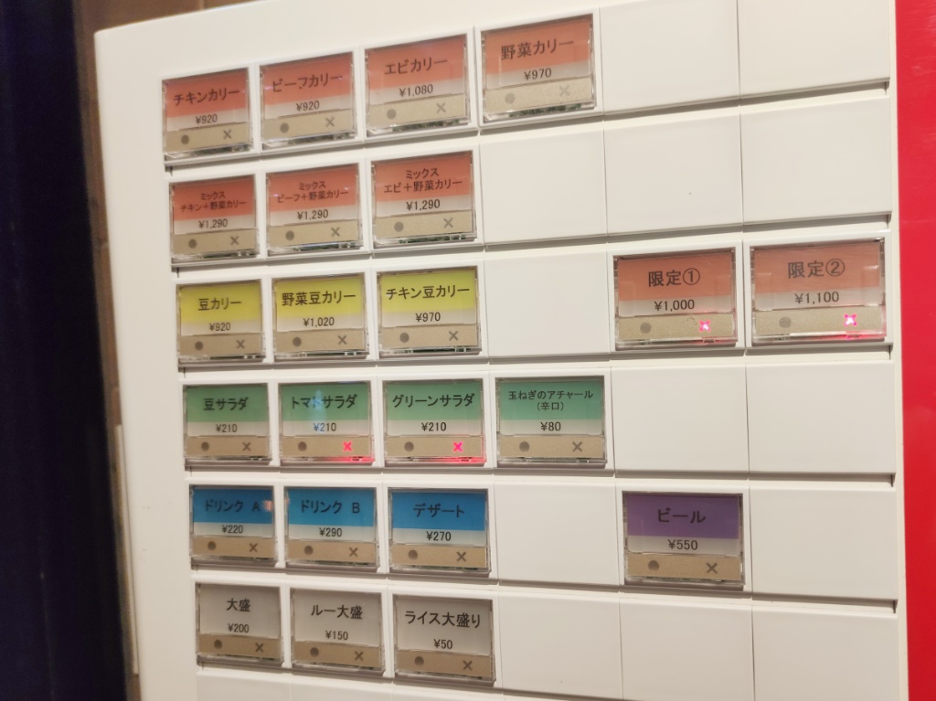 店内入って左側に券売機があります。食券を買ってから店員さんに指定された席に着きます。開店当初はカレーとコーヒーのお店ということで、エチオピアという名前を付けたと聞いていますけど、もうコーヒーはないようですね。