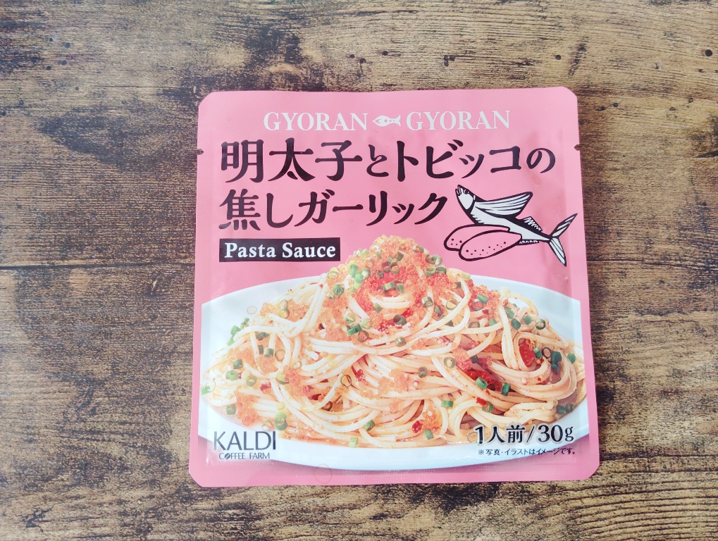 みなさん、大掃除は順調ですか?私は掃除をしつつ、見つけた賞味期限の迫っている食べ物の消費に躍起になっています。そしてみつけました。いつぞや、カルディで買った明太子とトビッコの焦しガーリック。パスタソースです。カルディで売っているこの形のパスタソース、結構好きで、新しいのが出るたびに買ってます。明太子、トビッコ、にんにく。全部好きです(笑)