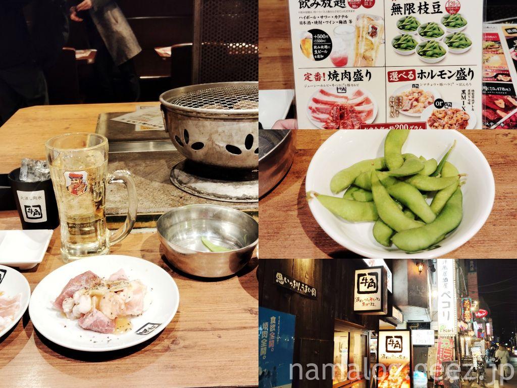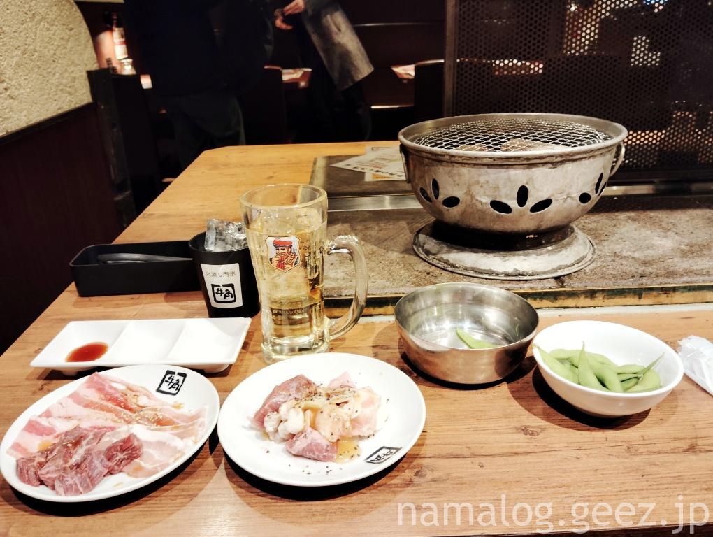 さて、焼肉酒場セットの話をしましょう。この焼肉酒場セットは平日限定で一人1,980円(税込み2,178円)で2時間飲み放題・枝豆食べ放題・焼肉盛り&ホルモン盛りで合わせて200g。ホルモン盛りは白MIXと黒MIXの2種類から選びます。これだけ聞いてもかなりの高コスパ! ちなみに飲み放題には生ビールはついてませんが+500円で、生ビールも飲み放題にすることができます。予約OKですが、クーポンの併用は不可です。牛角は多くの店舗がホットペッパーから予約できます。
