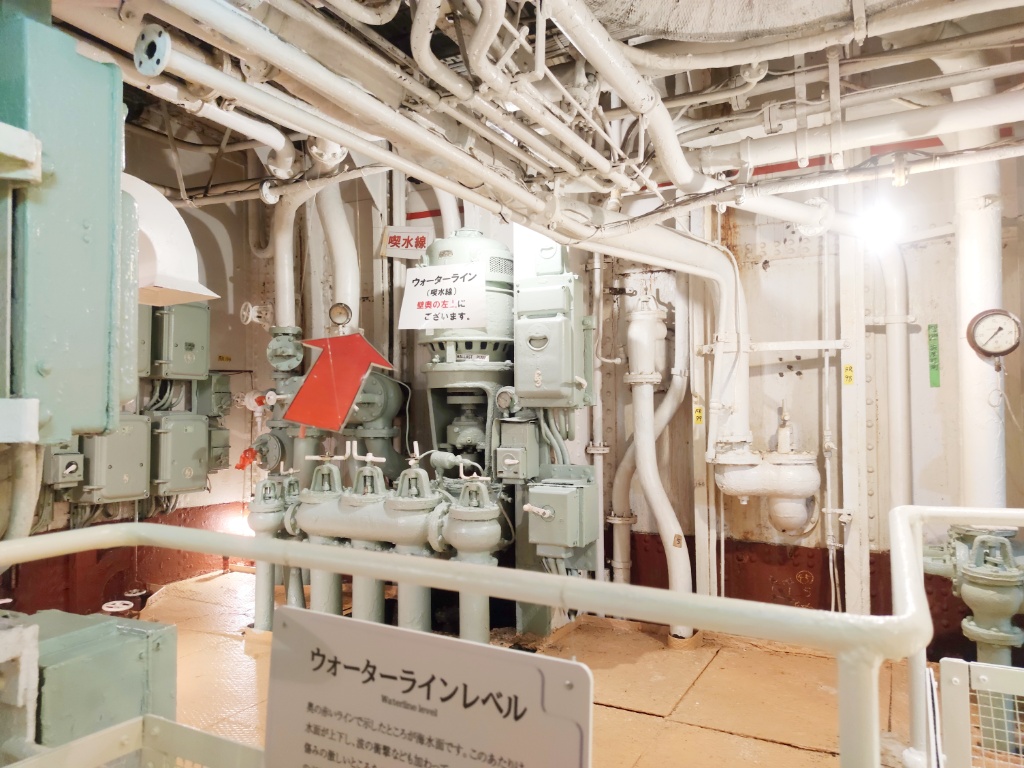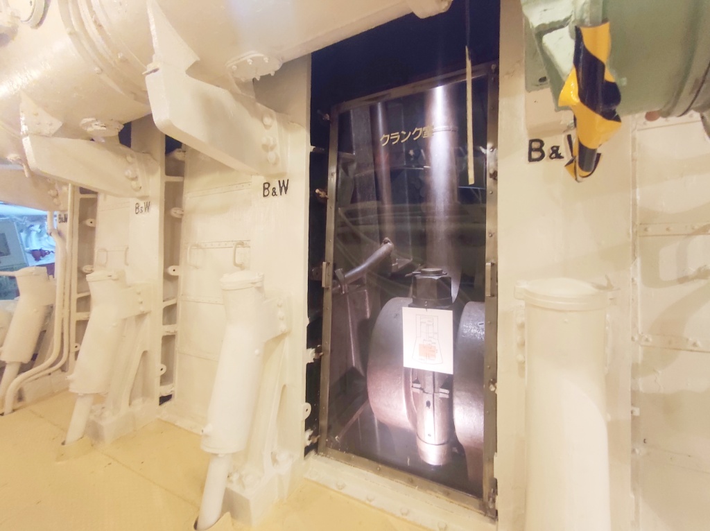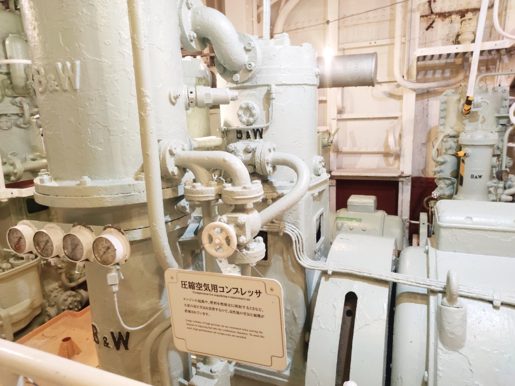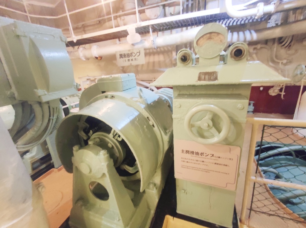 氷川丸、見学の最後は機関室です。こんなに見せてくれるの?!っていうくらい隅々まで見学させてくれます(笑) あんまり写真撮ってないんです。興奮しすぎて動画ばっかり撮ってた…いつか動画を編集してTiktokかYoutubeのアカウントで黙々と垂れ流しましょうかね・・・(怖)