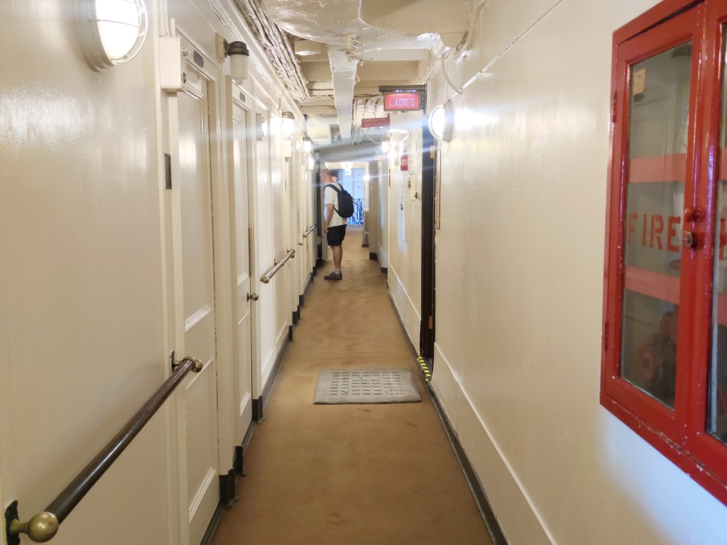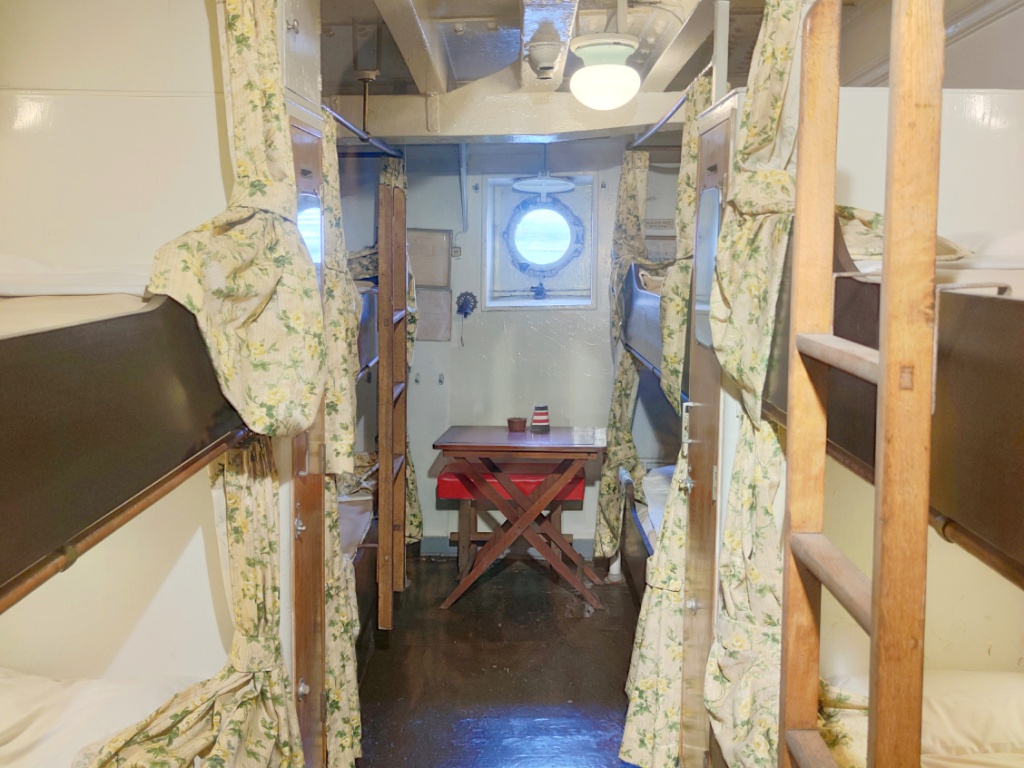 ちなみに3等客室はこんな感じ。二段ベッドです。階下にあるので、フロア全体が暗い感じでした。