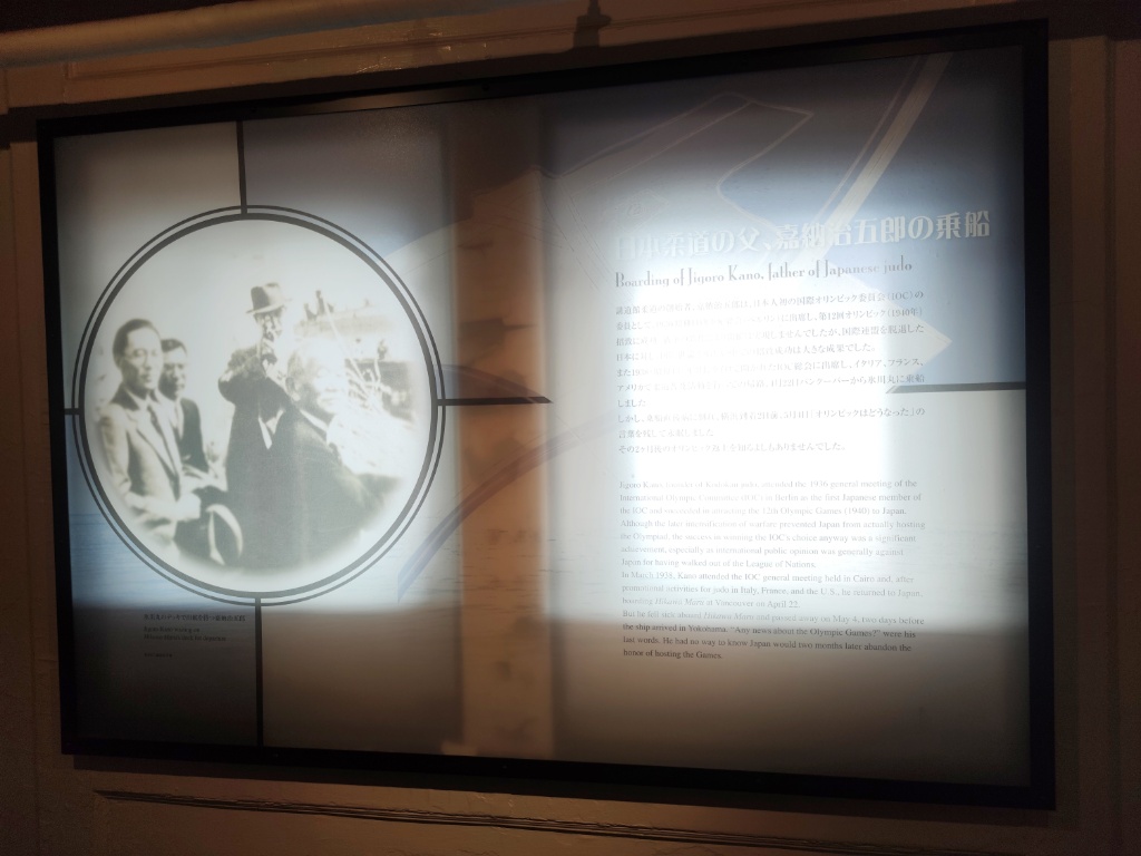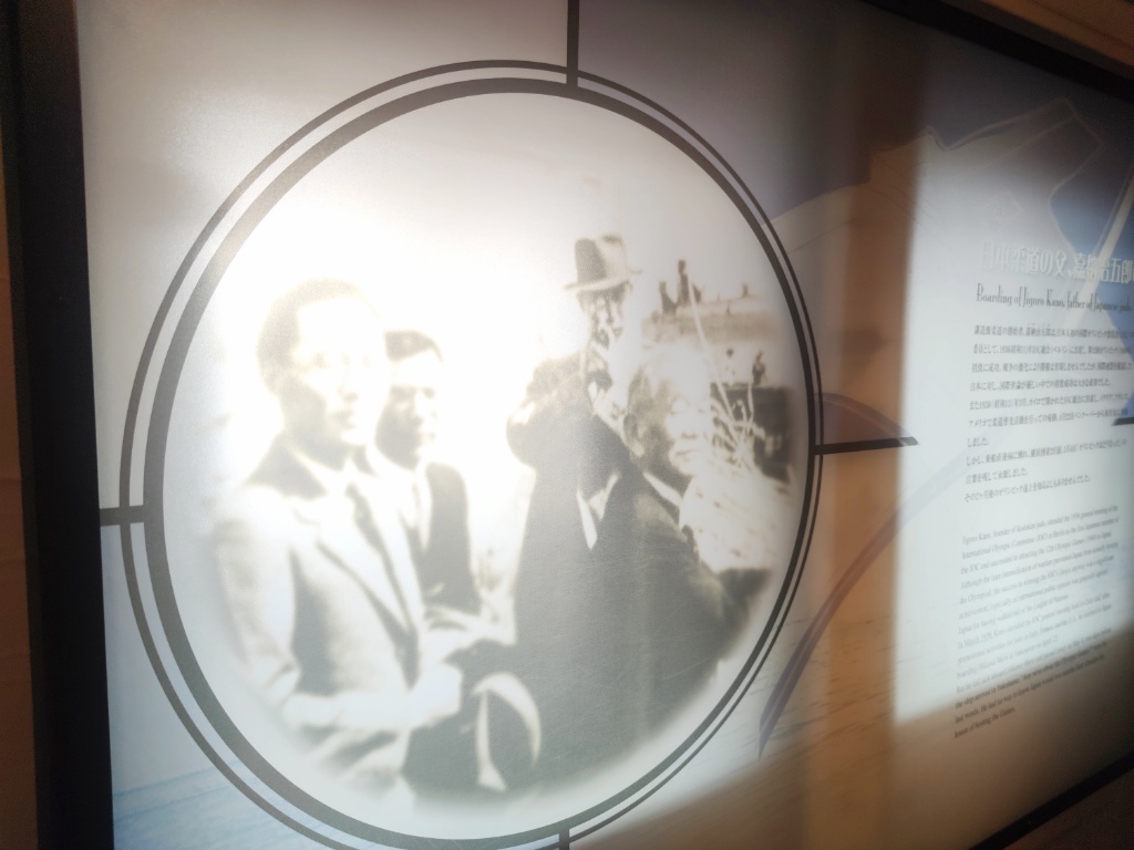 このほか博物館エリアがあって、この氷川丸に乗船した偉人達が紹介されていました。いろいろ居ましたが、やっぱり私は加納治五郎先生のところで足が止まりました。
