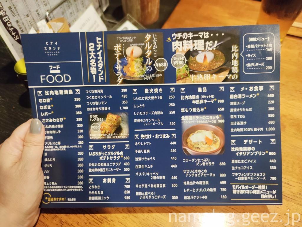 ヒナイスタンドは確か、亀戸にもあったなあ・・・と調べてみたらありました。錦糸町にある「比内地鶏炭火焼 ひない」のセカンドブランドらしいです。名前の通り、比内地鶏で楽しむ炭火焼き鳥のお店。