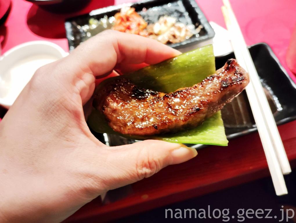 和牛味噌カルビは生ピーマンに乗せて(くるんで?)食べるんですけど、これがおいしい!生ピーマン大好きなんで、これはかなりお気に入りの食べ方!家でもやってみようかな?