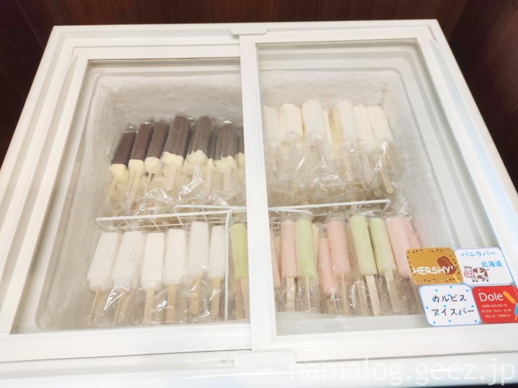 そしてその脇にあるのは・・・アイス! これも自由に食べ放題!お風呂上りのアイスはおいしい!