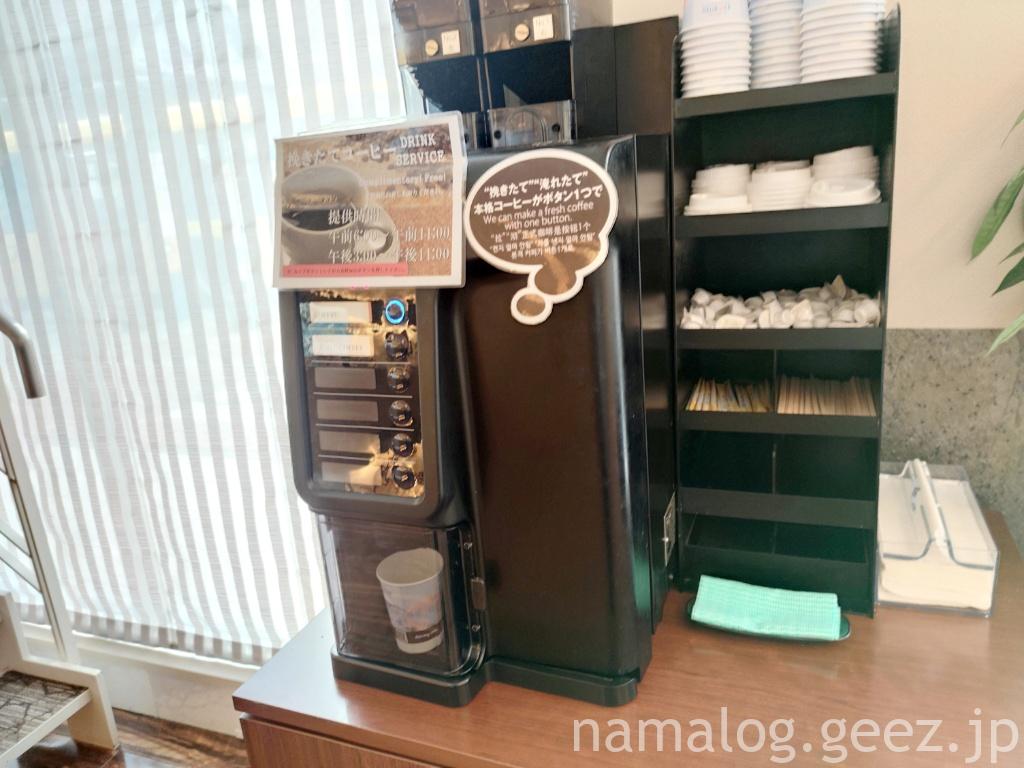入口から入ると広々としたエントランス。階段下にはコーヒーマシーンが置かれていました。これも無料。6時~11時、15時~23時。大体いつでも飲めますね。朝ごはんだけ外(セコマ)で買ってきてコーヒーはここで淹れて部屋でいただいてました。