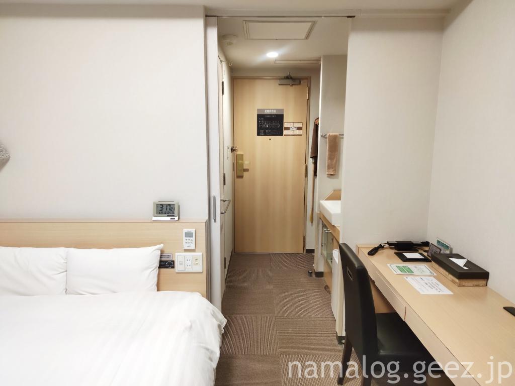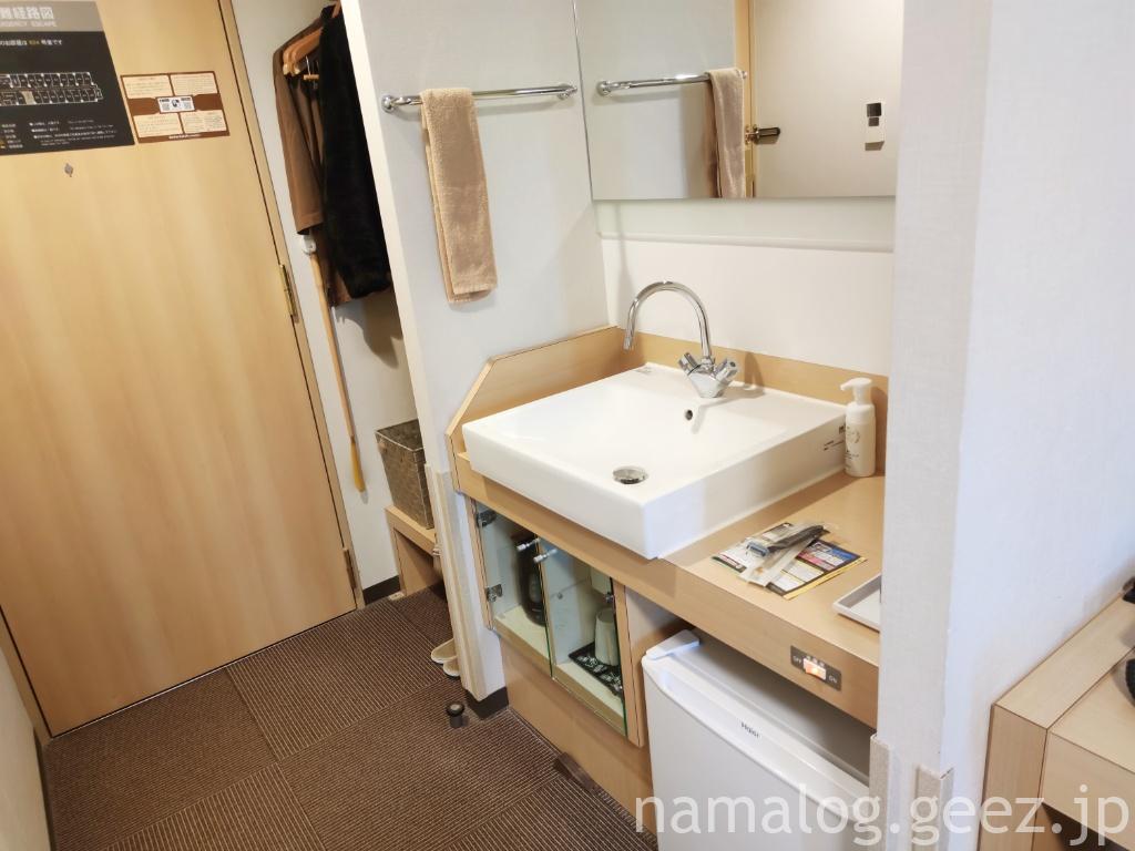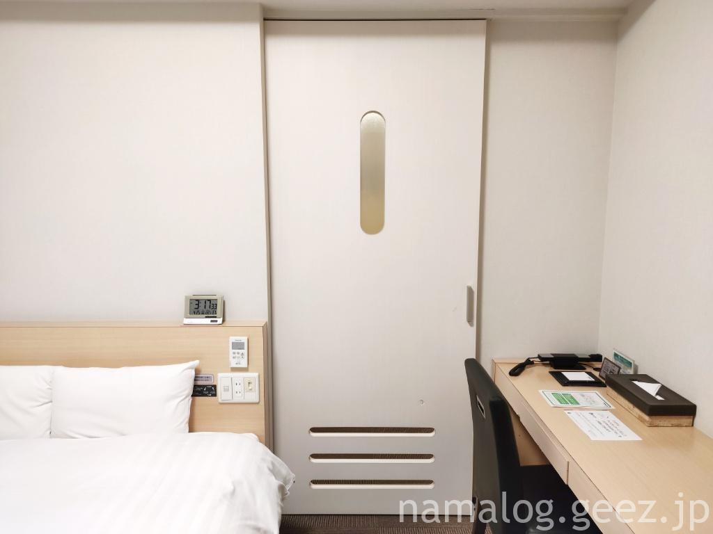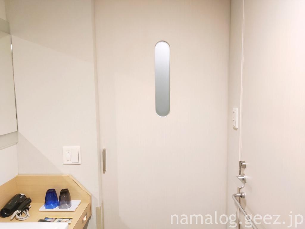ベッドルーム側から見るとこんな感じ。ハンガーやスリッパもここに。ベッドルームとの扉を閉めてしまうとちょっと寒いです。なので、寝るまでは開けてました。
