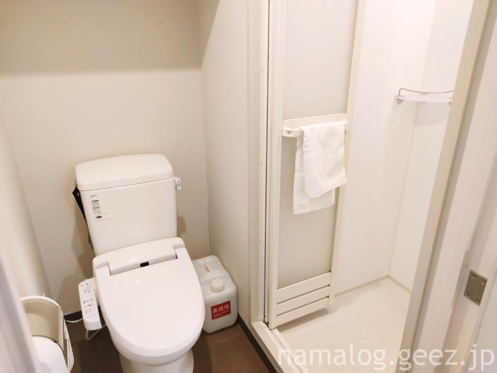 バスルームもここに。シャワー室は扉で遮れます。バスタブはありません。