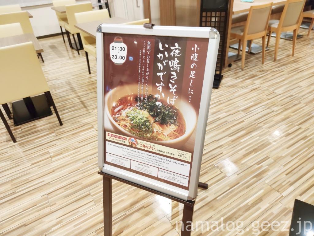 そして、ドーミーインといえば!夜鳴きそば!21時30分~23時という短い時間のため、食べられない人もいるかと思うけれど、そんな人には、「ご麺なさい」というカップめんが1階フロントでもらえます。