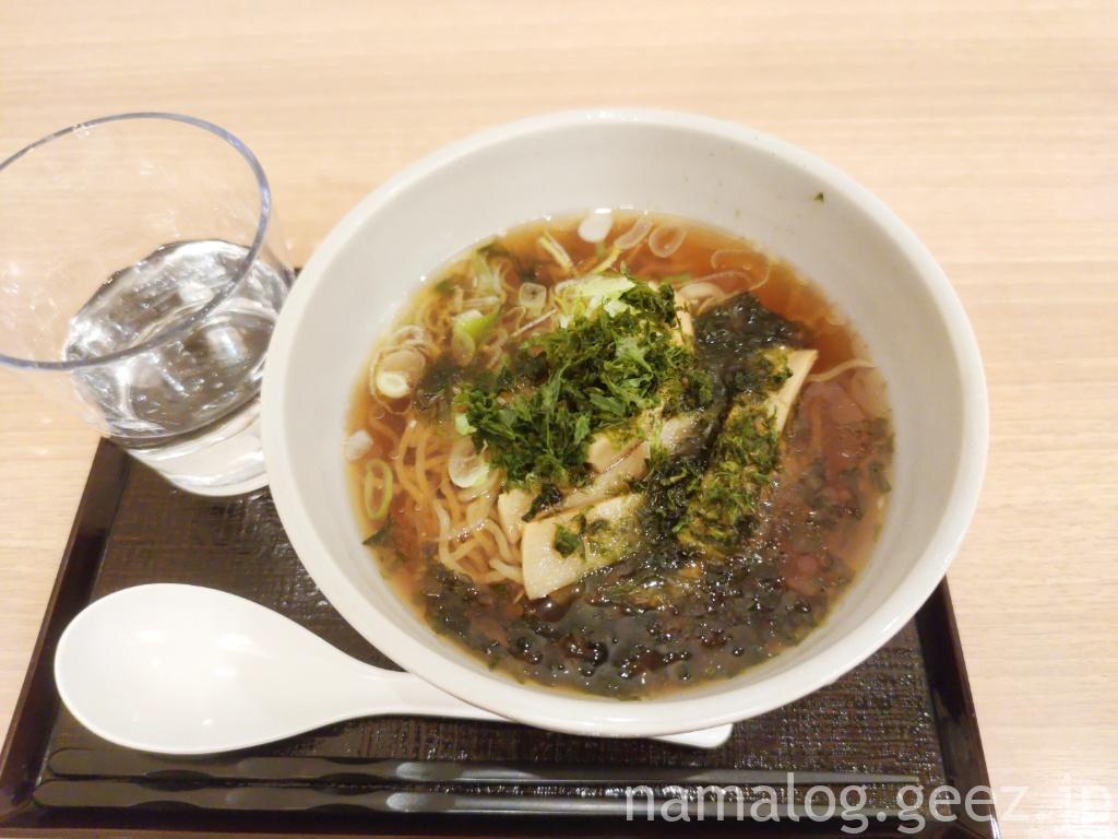 こちらが夜鳴きそば。シンプルなしょうゆラーメンに磯の香り。あっさりとして量的にもちょうどよく、夜遅い時間でもするすると完食! ちなみにおかわりOKだそうです。太っ腹!(私はもちろん一杯で退散)