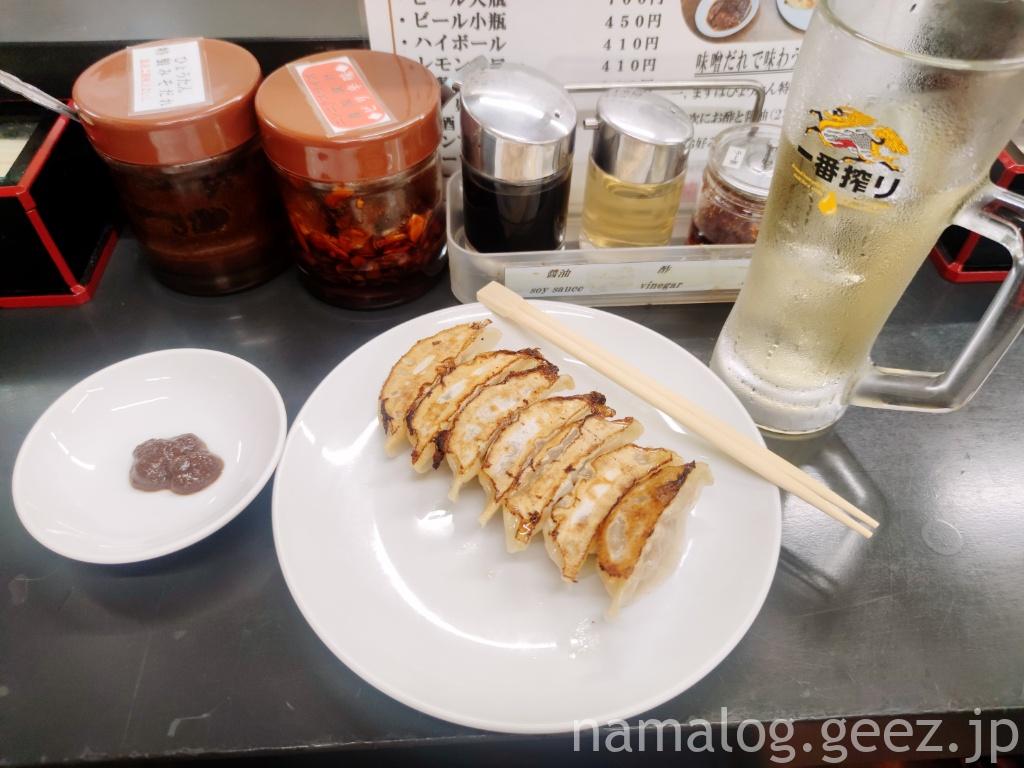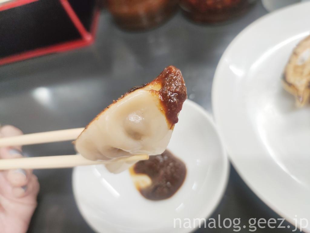 まずはおすすめにある通り、味噌だれだけでいただきます。ちなみに私、餃子1人前注文した後、まだ大丈夫だろうと、やっぱり2人前にしてほしいとお願いしたんですけど、オーダー順きっちり、1人前の後少し置いたタイミングでもう1人前来ました。ちょっと申し訳なかったな・・・(^^ゞ