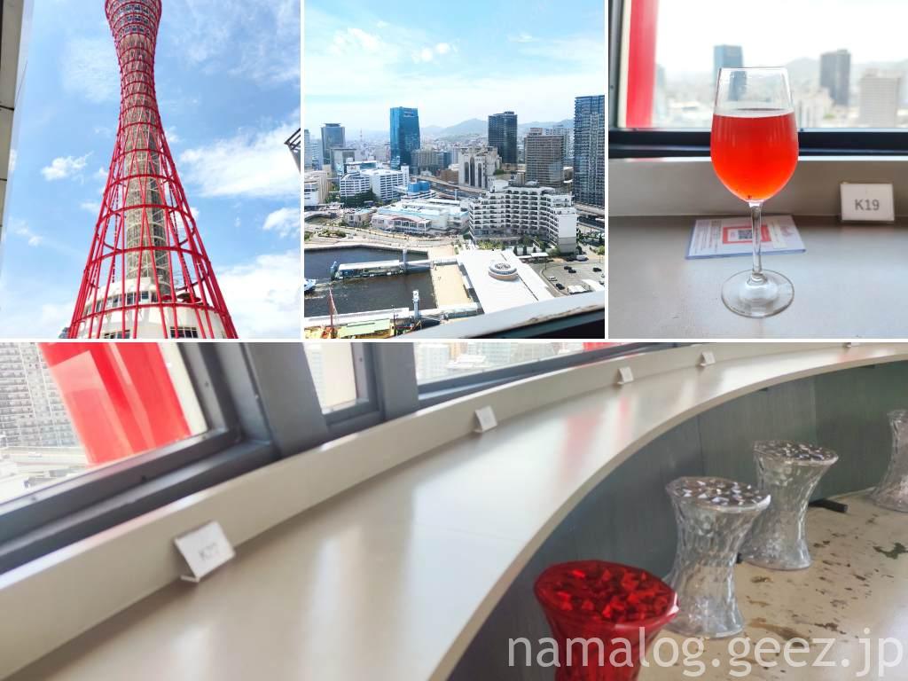 神戸ポートタワーは展望台へのチケットを買って展望台へ上がったあとは、高層階を1つずつ階段で降りるんですけど、そこにカフェバーがあったので、涼しいし、景色も良いし…ということで、そこで一休みすることにしました。Ready Go Roundという名前がついていることを知ったのはあとあとの話。
