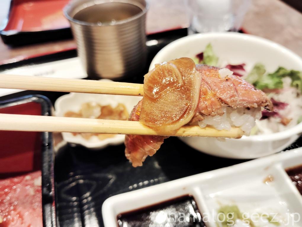 赤身のお肉はほどよい脂のノリで少し甘みがあります。価格的には一番下なんですけど、満足度は十分。