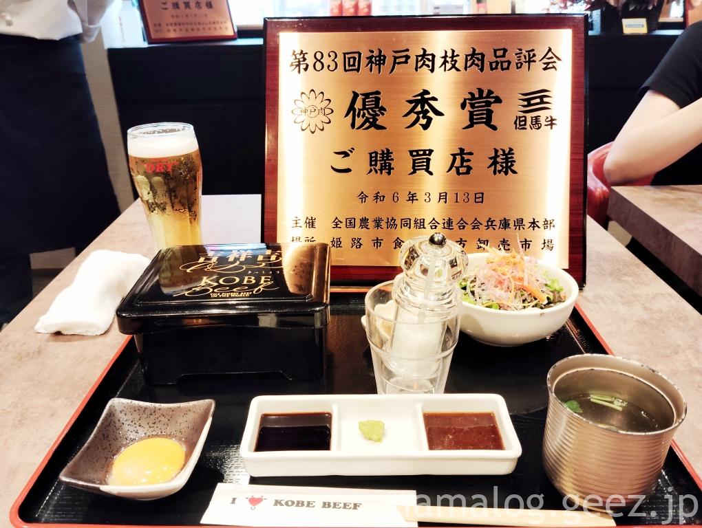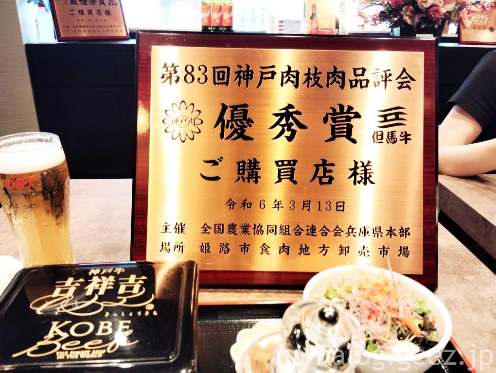 ちなみにこの神戸肉枝肉品評会の縦は窓際に立てかけられてるんですけど、私が勝手に持ってきたわけではなく、料理が運んできたあと、これもテーブルにおいてくれるんです。撮影用ですね(笑)