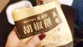 芝麻酥と書くこれは、胡麻のお饅頭(150円)です。黒胡麻のものも同様にあります。外側はとにかくもっちりと弾力があって、そしてとても油っこいです。油が滴ります(笑) 手がギトギトになります。でもこれが美味しい!禁断の食べ物って感じ。中の胡麻あんがサラッとしてるので、外側が油っこくても美味しくいただけてしまうんでしょうね。そしてこのちょうどいいサイズ。