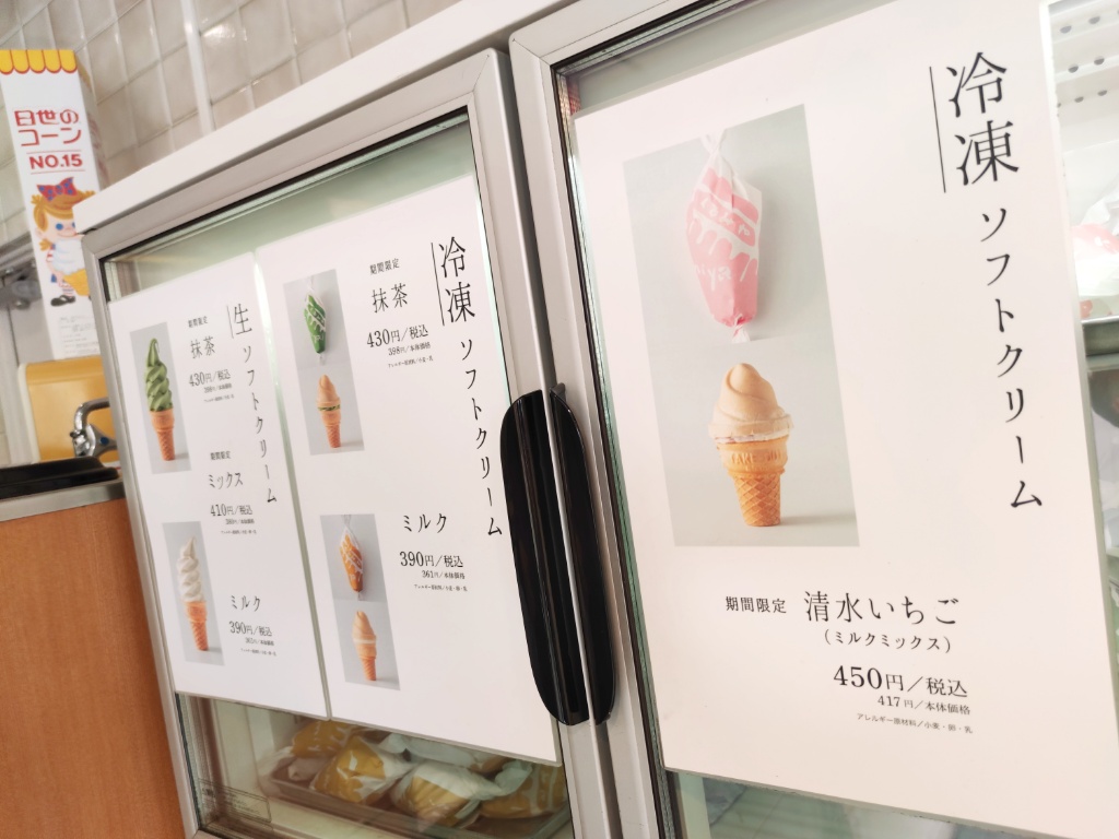 私たちの目当てはこちら。冷凍ソフトクリーム。生ソフトクリームもあるのですが、今回は昔ながらの冷凍ソフトクリームのほうです。