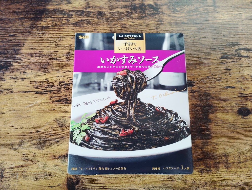今までパスタソースって、トマト、ペペロンチーノ、たらこぐらいしか使ったことがなかったんですけど、どうしてもいかすみパスタが食べたくなって、ついに手を出してみました!行列のできる予約でいっぱいの店 THE PREMIUM ラ・ベットラ流いかすみソース。値段も高めだし、ラベットラの名前を出してるし、きっと悪くないんじゃないかなぁ?と期待して。1食で300円ぐらい。