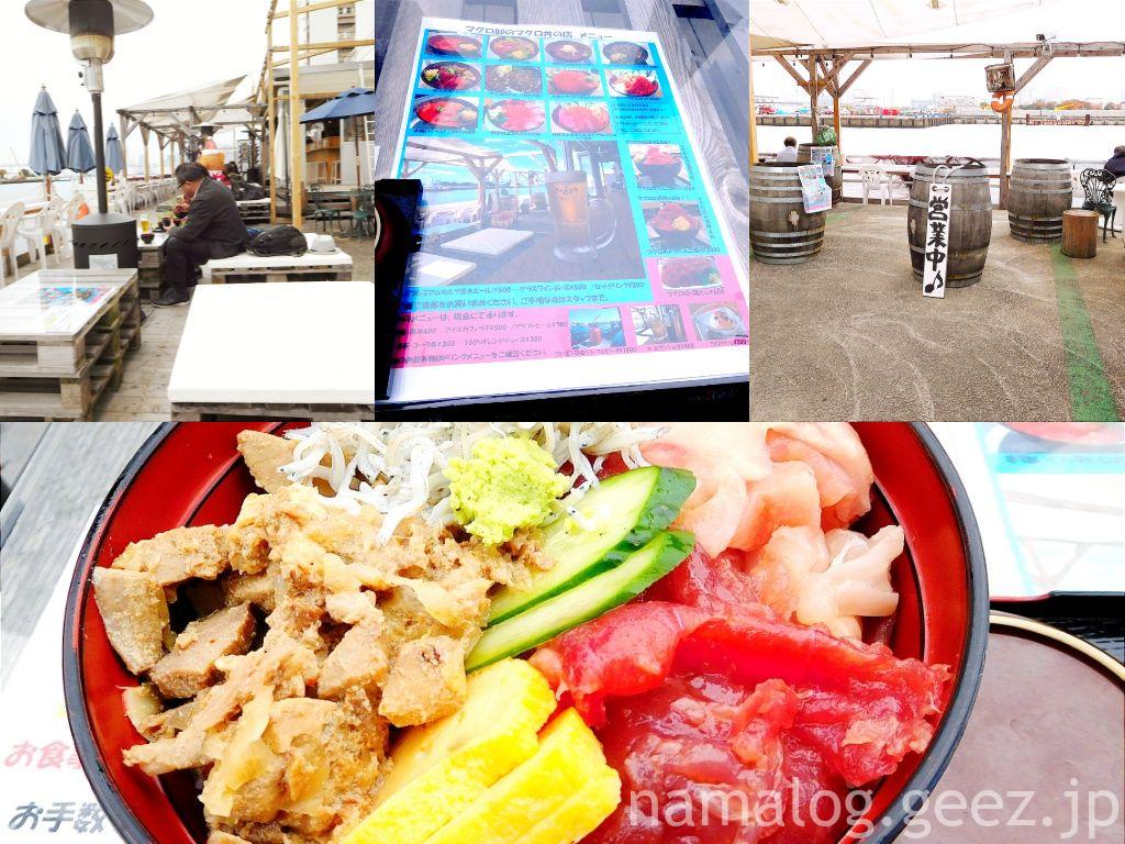 豊海水産埠頭にあるマグロ卸のマグロ丼の店へ行ってきました。ここはオーシャンビューで海鮮丼が楽しめるお店。名前の通り、鮪の卸業者がやっているお店。こうやって見ると倉庫か作業場かという感じですけど、お店です。やってます♪のめます♪