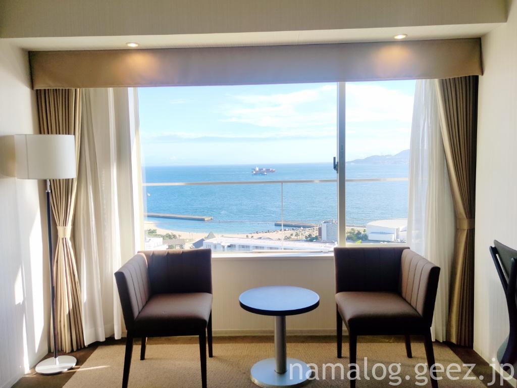 そして・・・。全284室ある舞子ビラ神戸。その多くはオーシャンビュー。もちろん、私が宿泊した部屋もこの眺望です!明石海峡が一望できます。