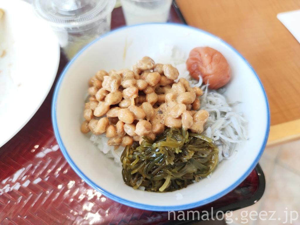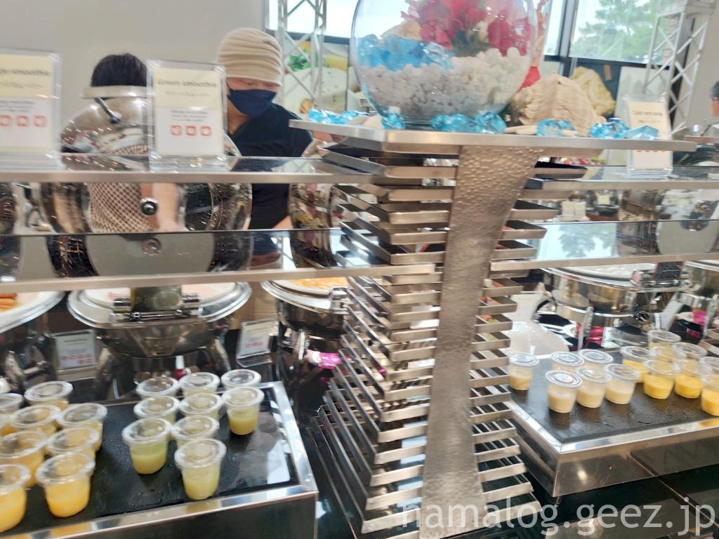 こんな感じで・・・。あ、朝ごはんは和食派です(^^ゞ 右下のたこめしがおいしかったですね。右上にあるのはスムージー。最初からこうやって1杯分ずつ陳列されてました。