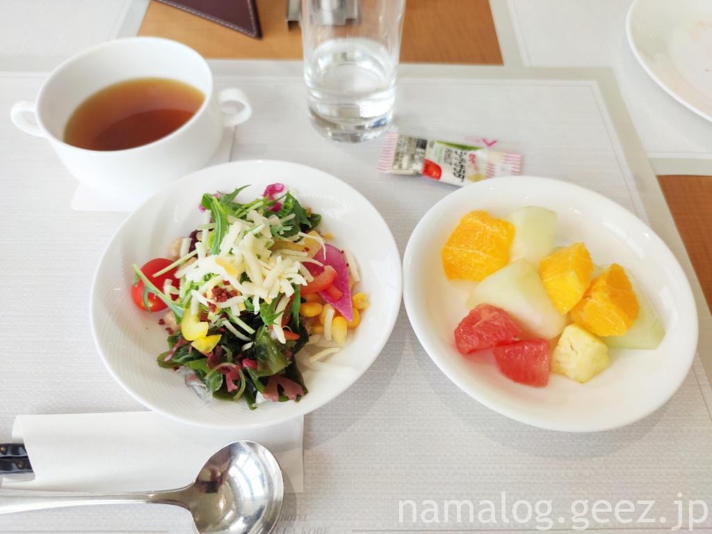 いろいろ食べたいので量はセーブしつつ・・・。サラダとフルーツ。