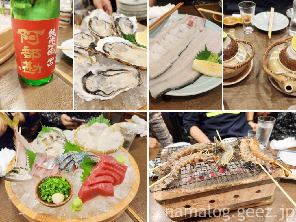 メニューは毎日日替わり。活穴子、活鯵、活たこは一年を通して人気メニュー。その他に季節の食材がならびます。いまだと牡蠣ですね。