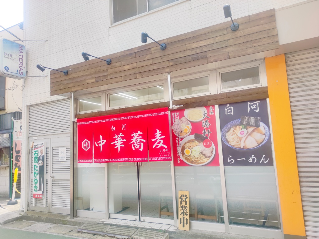 南八幡にあった白河ラーメンのお店が閉店して、寂しく思っていたんですけど、その少しあとぐらいに、北口に白河ラーメンと東池袋大勝軒系のラーメン・つけめんを出す、大勝軒おはこ八千代がオープンしました。ココの強みは何といっても通し営業\( ‘ω’)/
