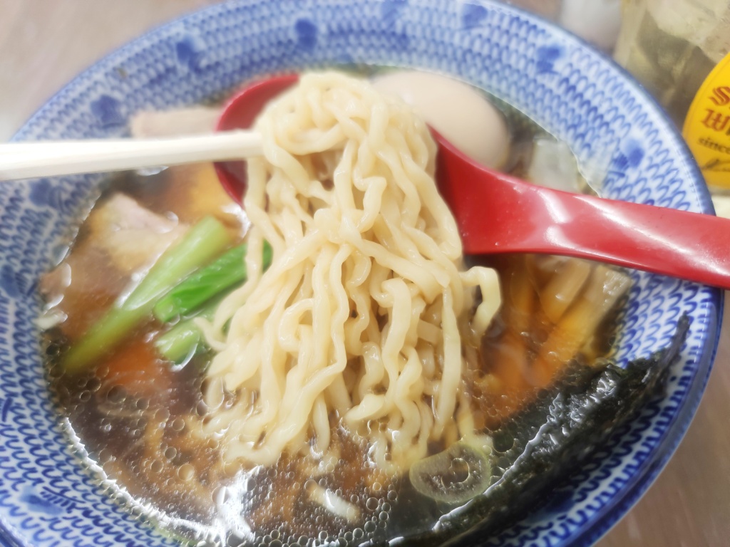 麺は中細のちぢれ麺で、あっさり醤油スープとの相性がとても良いです。少しオイリーなスープがちょうどいい。旨味もあって美味しいです。少し、松飛台のとら食堂に似ている気がして調べてみたんですけど、店主さんはとら食堂をリスペクトしてるとか。なるほどー!そして喜多方ラーメンっぽさもあります。