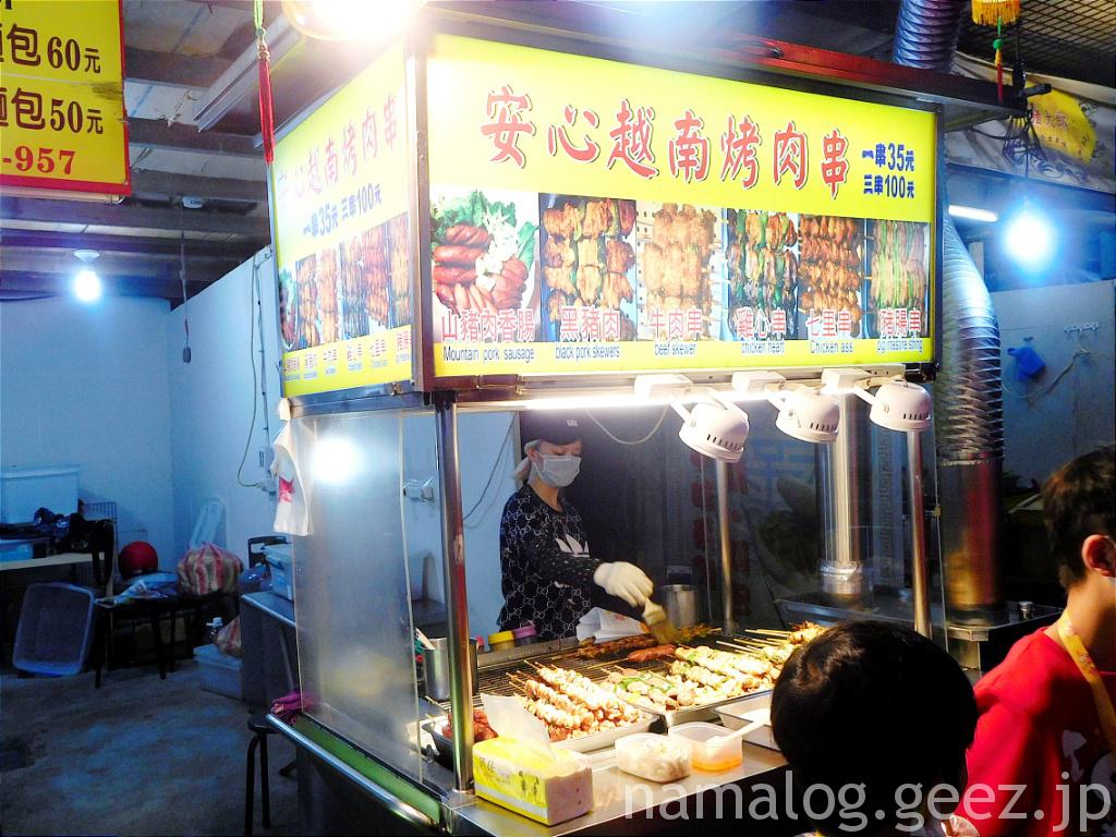 南機場夜市で水餃子や雞排を食べた後に通りをブラブラしていたら、ちょっと気になる屋台を見つけました。安心越南烤肉串というお店。越南はベトナムですよね。ベトナム風串焼きということでしょうか。写真を見る限りベトナム感はゼロです。そんなことより串焼きお肉が美味しそうです。というわけで1本だけ買うことにしました( ・ิω・ิ)