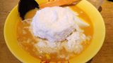 そしてこれが、メインの激辛もやしメン。醤油ベースのあっさりラーメンに、ブッフェ台にあったもやしと似たような味付けのもやしがたっぷり乗っています。激辛というほどではなくて、心地よい辛さです。
