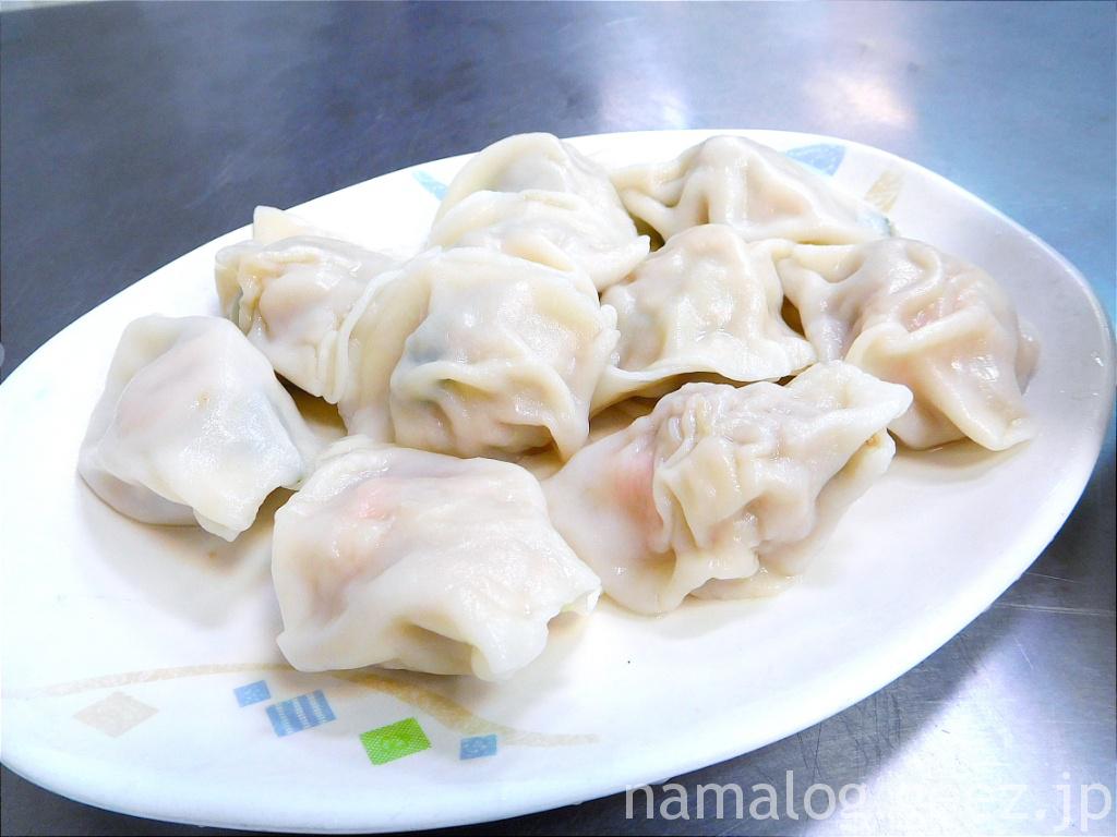 小さい海老が1個入っています。ニラとキャベツのシャキシャキ感も良いです。プルンとした皮は厚くもなく、薄くもなく、ちょうど良い。皮のつるんとした質感はこの写真でもお伝えできてるかな? これはおいしい!ただ、実は、海老の味はあんまりしません(笑) “海老”を期待するとちょっとがっかりするかも。でもそれを差し引いても、この水餃子自体が美味しいのです\( ‘ω’)/