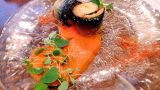 2品目はブッラータ。ブッラータ トマトとバジル エディブルフラワー