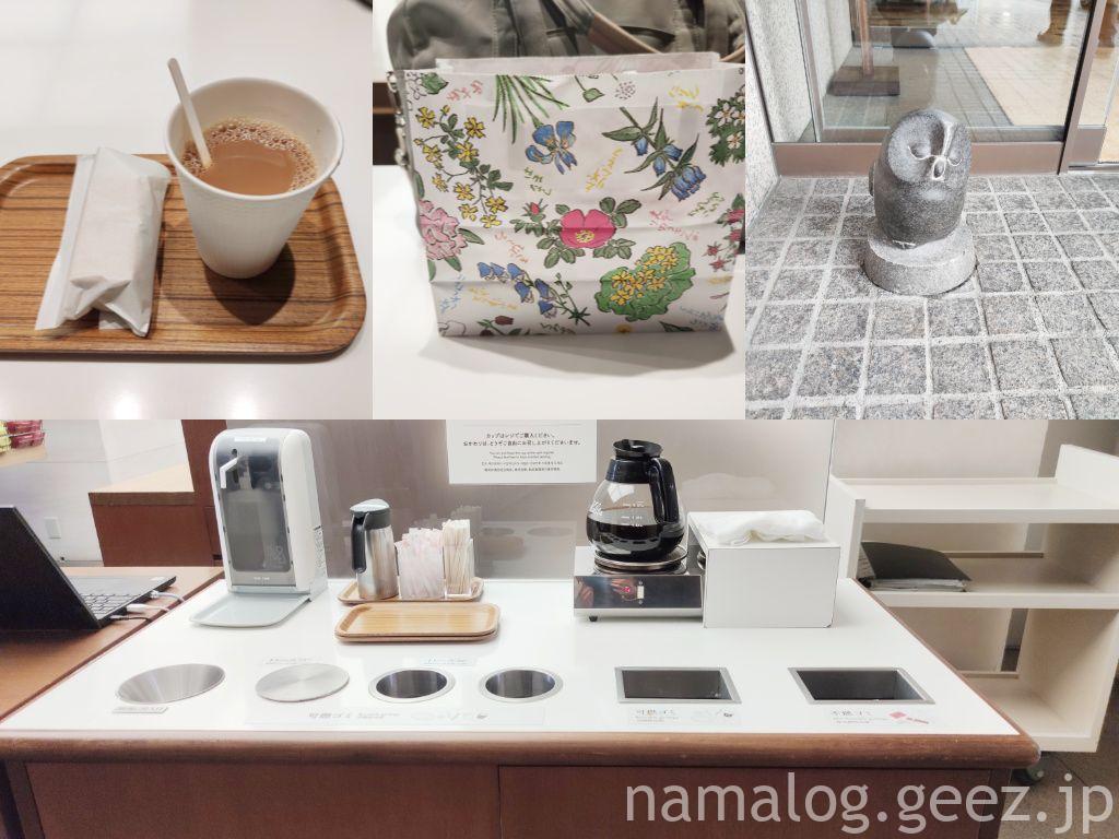 目の前にはコーヒー。150円でおかわり自由!なので、私は前日にサクサクパイと雪こんチーズを食べるのに喫茶室を利用していますが、この辺だけ食べたいなら、1階のイートインスペースで食べるのがリーズナブル。