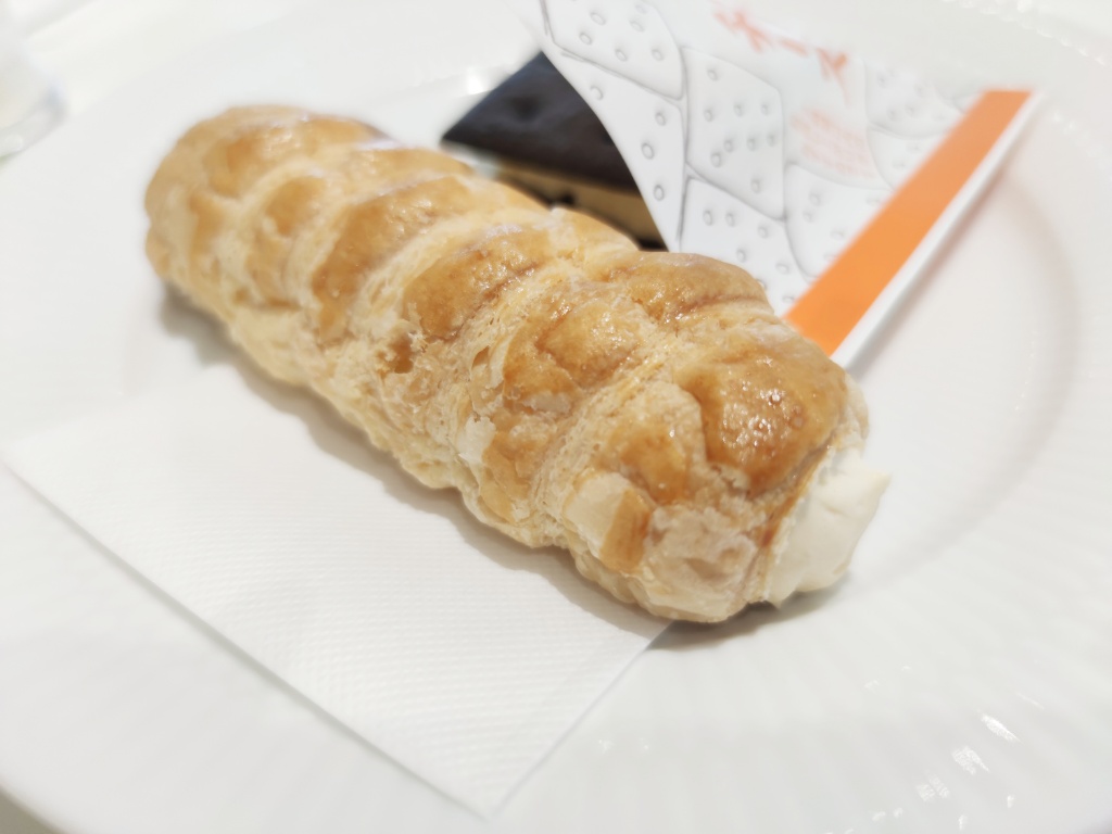 そして、これがサクサクパイ(280円)。こちらは賞味期限が3時間。なんといってもこのコルネ状のサクサク(ザクザクかな?)したパイ生地にたっぷりのクリームが詰まっていて濃厚でおいしいのです。このクリームも注文を受けてから入れるそうです。