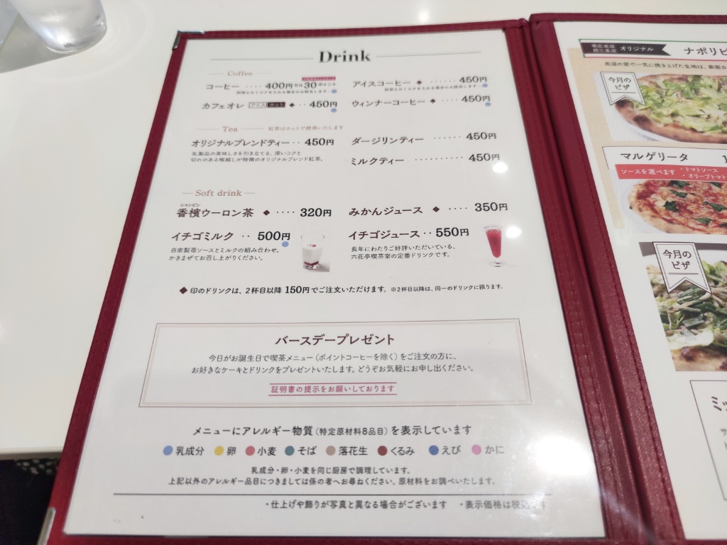 ドリンク。コーヒーはおかわり自由です。