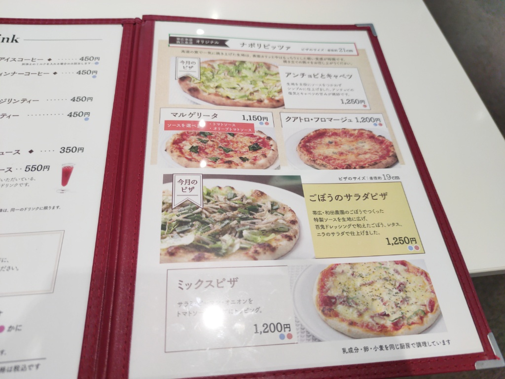 またしても写真を撮り忘れてるのですが、六花亭で多くの人が注文するのはパンケーキ。この日もスフレのようにやわらかいパンケーキがいくつも通り過ぎていきました。多分お客さんの半分以上注文してる気がします。そして帯広本店オリジナルなのがピザ。最後に行った函館店にはなかったので、ピザ自体帯広独自のメニューなんだと思います。こちらのメニューはフードもデザートも重めのものが多いですね。