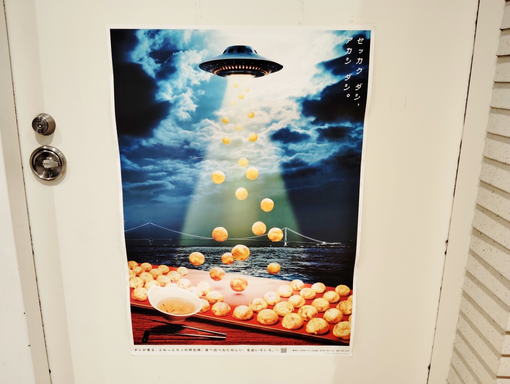 こちらが特別玉子焼き。赤い台は足が片方だけで、傾斜しています。面白い。1セット15個入り。これが、明石の標準だそうで、写真で見るとそのボリュームにビビりますが、この玉子焼き、とてもやわらかくてほわんほわん。溜まる感じが一切なく、飲み物ののごとく喉を通っていきます。