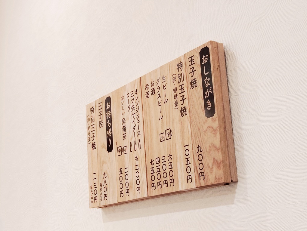 こちらがメニュー。玉子焼オンリー。玉子焼は2種類。普通のと特別玉子焼。違いはタコと玉子の量。