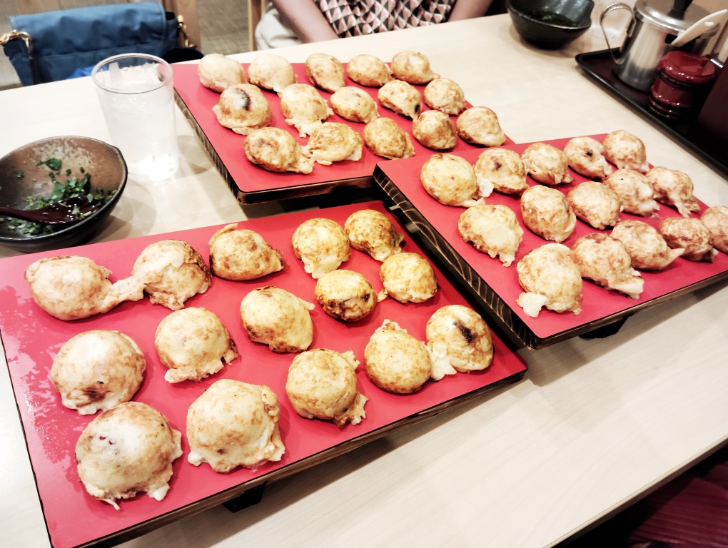 食べ方としては、最初に出てきただし汁にくぐらせていただくほか、卓上にあるソースをハケで塗ってタコ焼きのようにして味わうのもよかったです。最後はソースを塗った玉子焼きをだし汁にくぐらせて食べ終わりました。他に七味唐辛子などもあるので、ワイワイ楽しみながら、15個を色々な食べ方で味わいました。