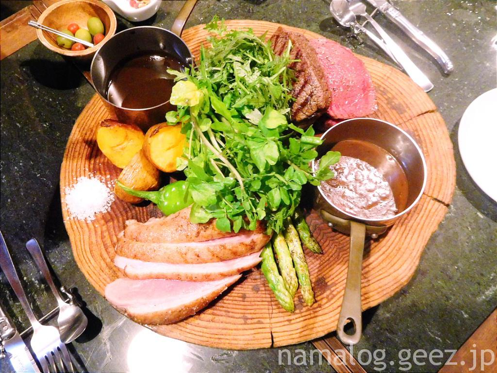 主菜を2つ注文したら、切り株に盛り付けてきてくれました!壮観!