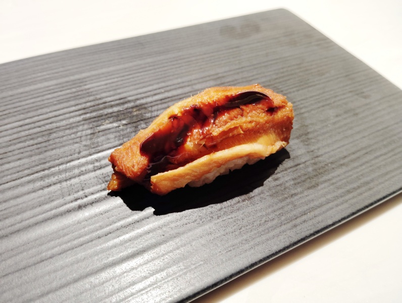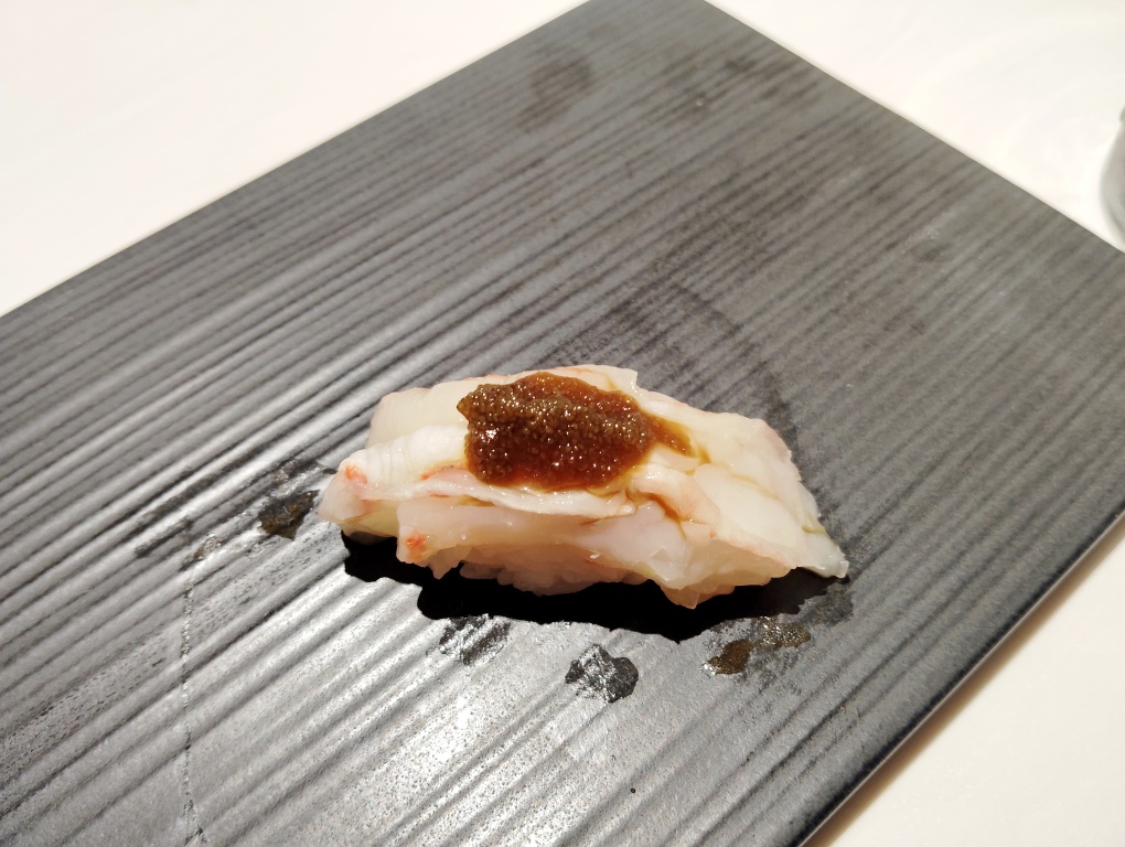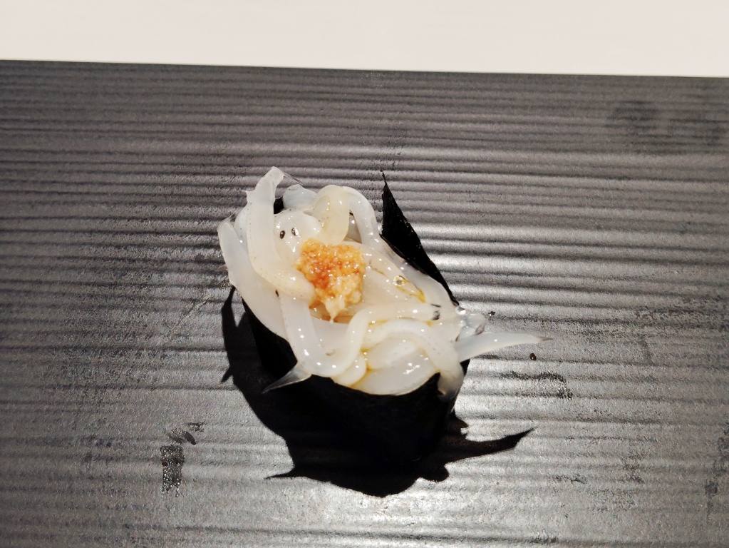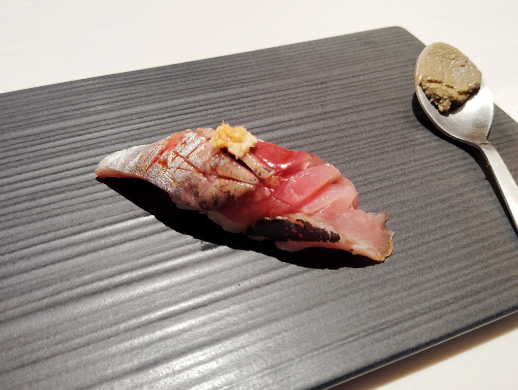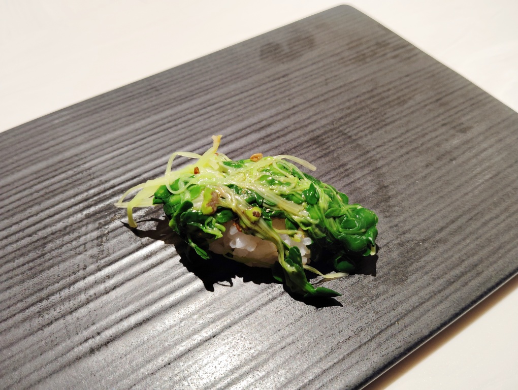 貝割れ昆布締。こういう野菜やきのこを昆布〆したにぎりって大好きなんですよね。いつかそれだけのコースを食べてみた・・・いや、さすがに物足りないか(笑)