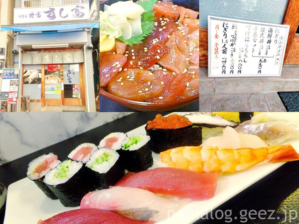築地の評判の良いお寿司屋さんはどこも混んでるけれど、そんな築地の喧噪から少し離れたところにすし富というお店があります。こちらはまぐろの仲卸「鈴富」のお店で、まぐろをはじめ質の良いお魚を使ったお寿司が食べられるのです。いいお店なんですけど、中心から少し離れるためか、比較的すいています。