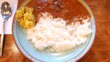 このカレー。さらさらとしてキリッとした辛味。久々に食べたら、こんなに辛かったっけ?ってびっくりしたんですけど、口の中を程よい痛みが走り続け、箸が止まらなくなるオイシサです。実はここ数年ご無沙汰していた理由の一つに、どんどんお肉やポテトが減っていって、スパイス感も減り、ごはんもイマイチになっていたことがあるんですけど、素直に(?)、1,150円まで値上げしたからか、ご覧の通り、やわらかビーフたっぷりでポテトもたっぷりでとてもうれしかったです。卓上のチリパウダーを少し足したけど、かわり映えしなかったです。十分辛いからな(笑)