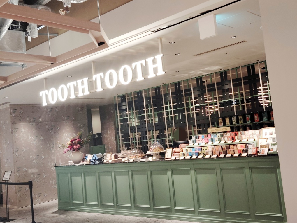 ニュウマン高輪のお店は9月にオープンしたばかり。平日の夜に行ったらまあまあすいてましたが、週末は行列ができて、待ち時間100分なんてのもザラだとか。ネットで予約ができたので事前に予約していきました(友人が)。店頭にはケーキや紅茶が売っていてこれらを購入することもできます。あ!ニュウマン高輪はJRの設備なので、このTOOTH TOOTHもJREのポイントがたまります!
